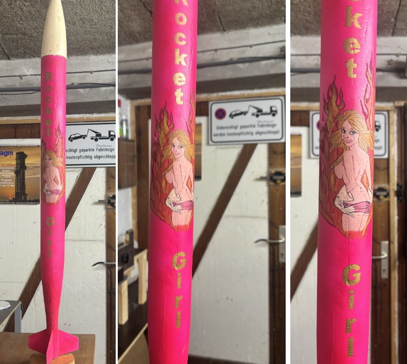 Hat vielleicht jemand von Euch Rocket Verrückten Interesse einen feurigen Flirt mit dieser Dame einzugehen? Ihre Maße sind 90 / 60 / 24. Ein 24ger Motor ist also Voraussetzung. In der Spitze ist sogar passender Raum für einen Simply-Altimax vorhanden. Es kommen da aber nur erfahrene Kandidaten in Frage.