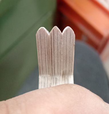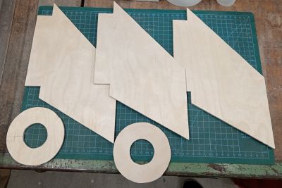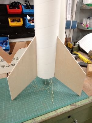 Ich habe mittlerweile die Flossen abgerundet. Alles händisch mit 120er Schleifpapier. War bei dem Flugzeugsperrholz nicht gerade eine einfache Sache und ein Bandschleifer steht jetzt auf meiner Baumarkt-Liste