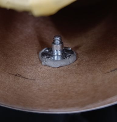 So habe ich dann die Einschlagmutter eingebaut und mit einer Schraube so festgezogen, dass sie in die Knete gedrückt wird, aber ohne dass das Gewinde der Schraube verklebt wird. An meinem Teststück hält das allein schon irre fest. In der Flamingo werde ich noch einen Klecks Epoxy über das ganze geben.