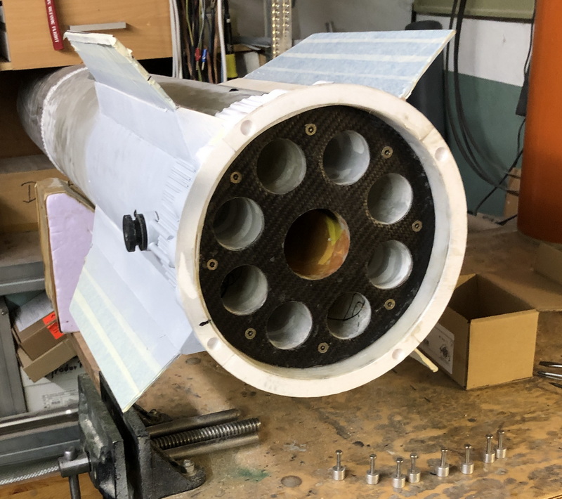 Habe tatsächlich mit dem Gedanken gespielt. Aber dann müsste ich das Starship zersägen, einen Kuppler einbauen, ein Antriebsteinschub ähnlich wie in dem Booster der Clusterblock, oben dann Platz für Fallschirm. Im Kuppler dann doch eine weitere Elektronikbay. Oder Motorausstoß, und die Antriebseinheit fliegt zusammen mit dem Fallschirm raus. Das alles sind vielleicht Optionen für später. Mir reicht mein jetziges Vorhaben. Die Vorflügel sind jetzt an beiden Seiten laminiert.
