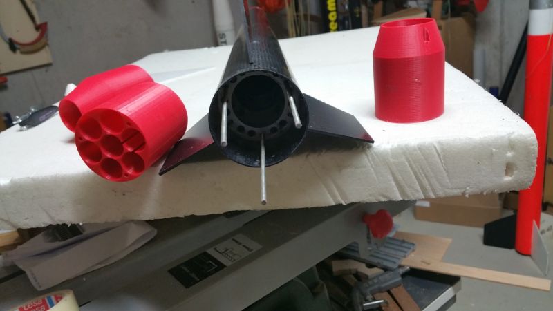 Am Wochenende sind wieder ein paar Teile fertig geworden. Am wichtigsten die Aluspanten, die das Gegenlager der Finnen bilden und gleichzeitig als 38mm Motormount fungieren. Der Kolben für den Fallschirmauswurf als Schutz für das optionale Motorbackup und der Fallschirmcontainer für den Main.