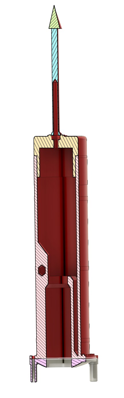 Mitlerweile bin ich wieder etwas weiter. Das Original hat einige Tankanschlüsse im unteren Bereich, Peroxid, Fuel, LOX und LOX Vent Anschlüsse sind das. Die mussten natürlich mit rein.