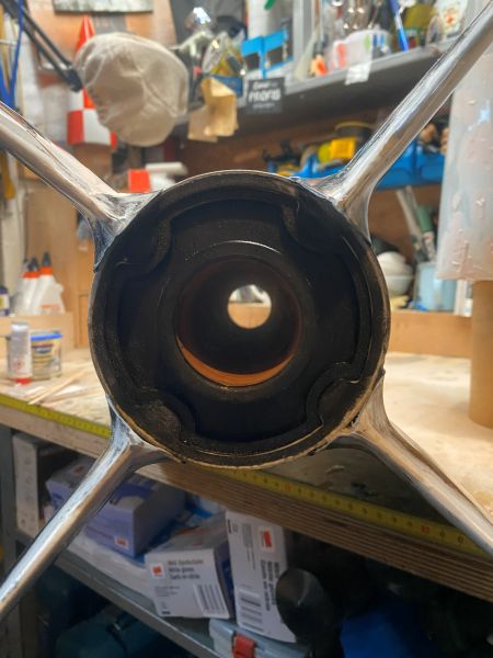 es geht ein kleines Stück weiter: Das 4" PML Rohr für das Innenrohr und das 4" Kupplerrohr konnte ich auf einer Formatkreissäge passend und pikobello winklig ablängen. Und wie der Zufall es so wollte. habe ich in einem Restekarton von mir noch ein 44cm langes Stück 54mm PML-Rohr gefunden, aus dem jetzt das 430mm lange Motorrohr wird. So muss mein schönes neues 54er Rohr gar nicht zersägt werden und kann für weitere Projekte ganz bleiben. Ist ja unfassbar, was das Zeuch mittlerweile kostet.... Hier ist das Innenleben mal lose zusammengesteckt. So soll das ganze Konstrukt später im Körperrohr sitzen. Aber am Stück geht das da nicht rein, jeder Ring möchte einzeln eingeklebt werden. Von daher geht das ab jetzt alles nur schrittweise und langsam, da jede einzelne Klebung in der warmen Küche übernachten möchte. Als erstes wird mit Hilfe von JB Weld temperaturfestem 2K Kleber aus meinem Motorrohr und dem Retainer ein Stück. Danach wird der Schubspant über das Motorrohr gesteckt und direkt auf dem Retainer aufliegend verklebt. Motorrohr mit Schubspant werden dann als ein Stück in die GFK Hülle eingesetzt, mit dem ersten Ring zentriert und verklebt. Sieht leider nicht so sauber aus, wie ich das gerne gehabt hätte, da die Harzpampe hierzu mit einem an einem Stab angebrachtem Löffel in den Tiefen des Körperrohrs appliziert wird. Egal, viel hilft viel. So sieht dann irgendwann mal das "Business End" aus Zweiter Ring aus 4mm Birke Dritter Ring aus 6mm Multiplex, hier endet das Motorrohr und beginnt das 4" Innenrohr Auf dem Ring eine Aufdoppelung aus 4mm Sperrholz als Zentrierung für das Innenrohr und als Verstärkung für den Aufhängepunkt der Schockleine. Unterhalb und oberhalb, (deswegen schaut das Motorrohr etwas durch den Spant hindurch) sind kurze Stützringe aus Phenolrohr aufgeklebt. Ich habe schon wesentlich massivere Aufhängepunkte gebaut, aber da war das Gewicht der Zelle auch drei, viermal höher. Das wird halten. Zwischen den Ringen müssen jeweils auch die Halter für die Railbuttons eingeklebt werden, da sonst die Ringe nicht mehr daran vorbei passen. Dazu habe ich M4 Gewindemuffen in einen Halter aus zwei Lagen Sperrholz eingeklebt und die so vorbereiteten Platten mit ordentlich angedicktem Harz und Glasmatte eingeklebt. Mit einer Schraube und einer Hülse wird der Halter in Position gehalten bis das Harz fest ist. Soweit Jan Geändert von Kabelmann am 19. Dezember 2025 um 23:17 |