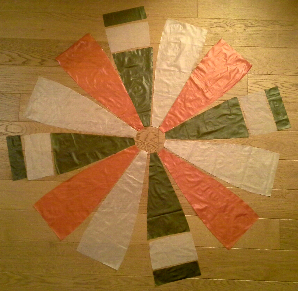 Jetzt fehlen noch die Leinen. Ich denke, ich werde an jedem grünen Panel zwei Leinen anbringen.