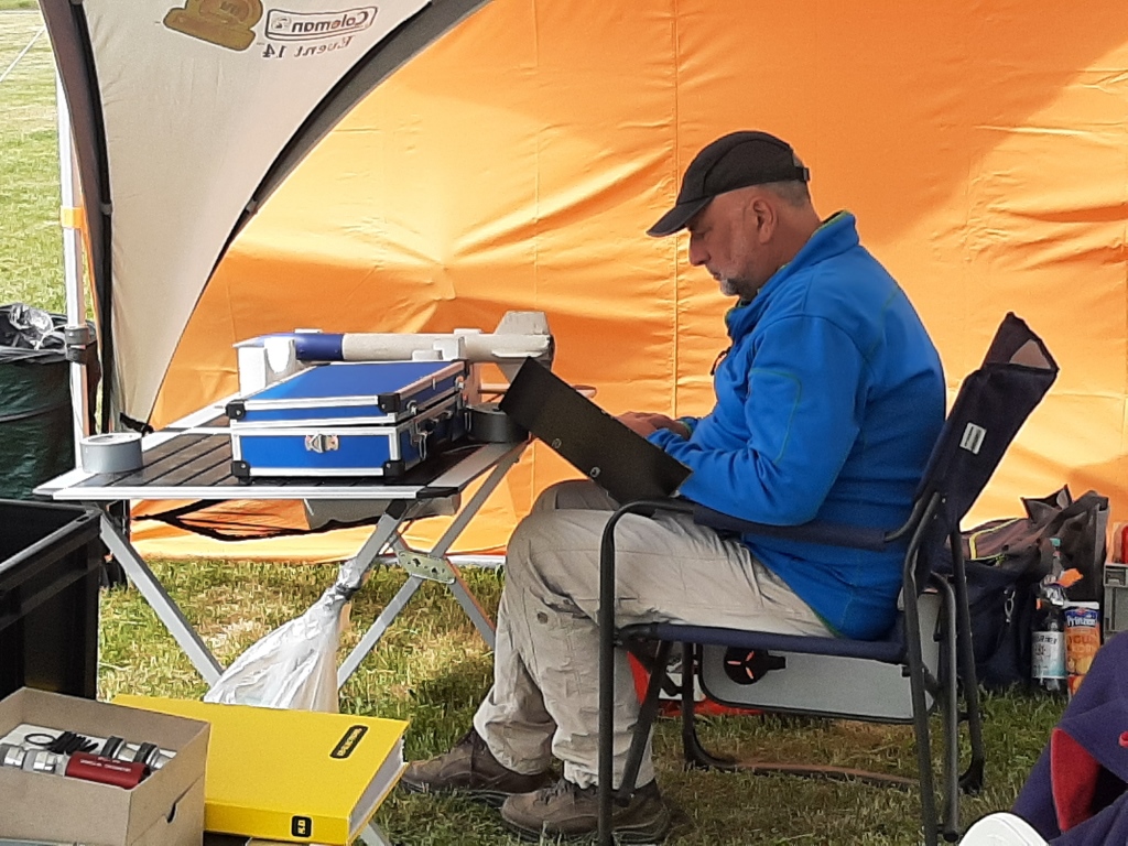 Hybridfliegerrunde, fachsimpeln... Mathias ist extra für den RJD aus seiner neuen Heimat Australien angereist... Hagen dieses Jahr im sturmsicheren Zelt... unser Schatzmeister Jürgen, Alex mit seinem "Arbeitspferd"...;-)