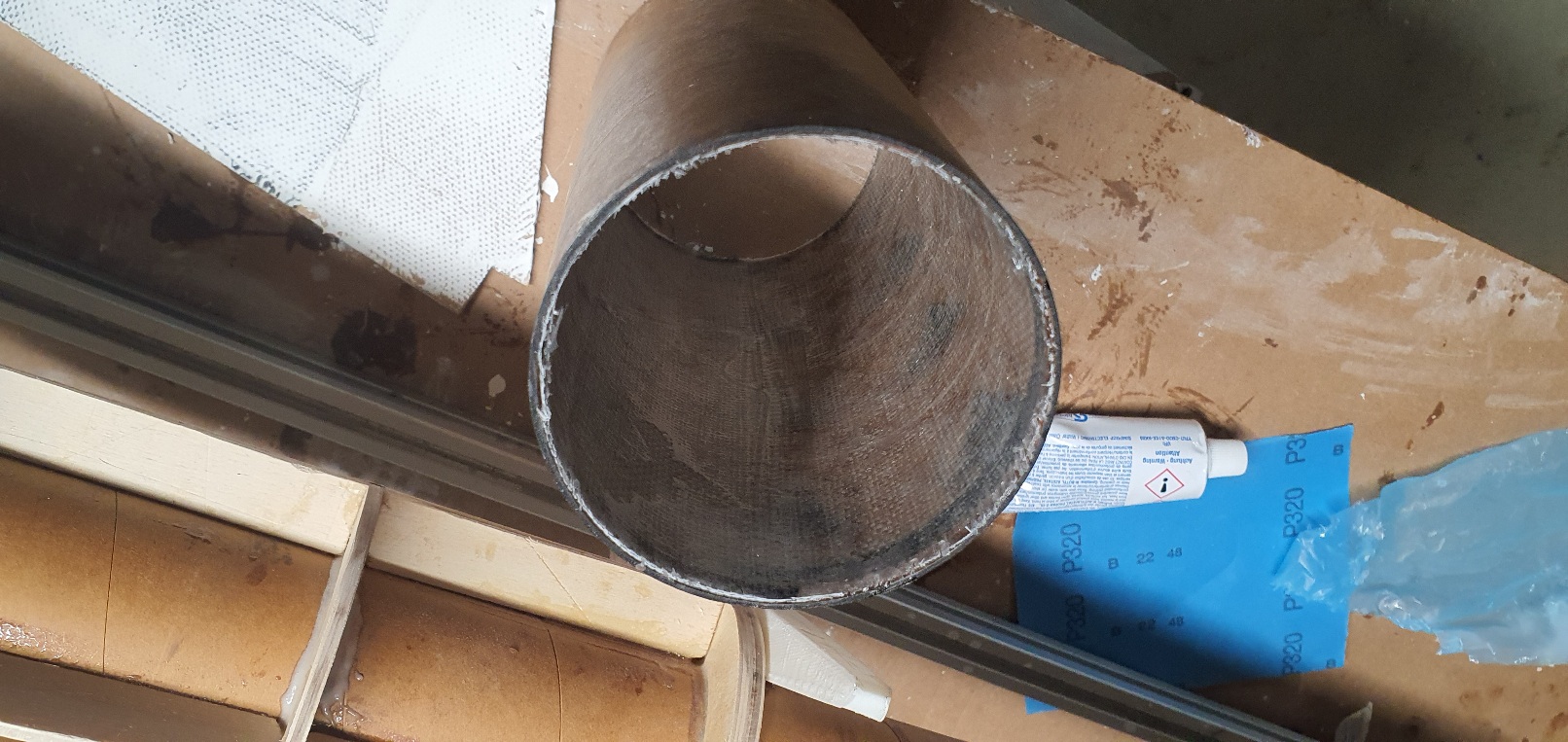 Ich muss noch den Kuppler verstärken und die Rohre schleifen, dann kann ich das Modell zusammen kleben. Die untere Sektion wird mit dem oberen Körperrohr verschraubt. Das macht das Handling mit Hybridmotoren einfacher, hoffe ich. Das angestrebte Leergewicht ohne Motor liegt bei 2800g. Da muss ich mir warscheinlich noch etwas sinvollen Ballast suchen.